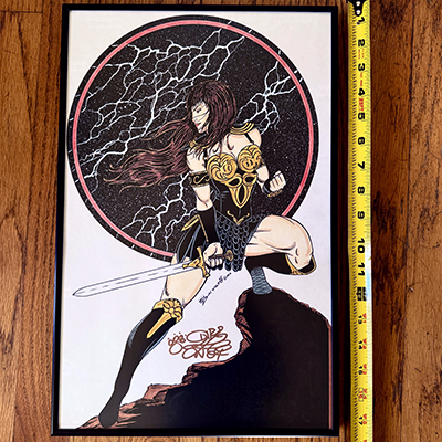 Sarge photo and Cyane convention banner, both autographed by Victoria Pratt.